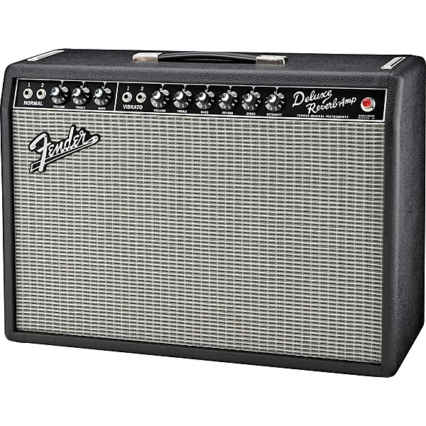 The Fender '65 Deluxe Reverb combo amp delivers the coveted sound of a mid-1960s Fender amp in a portable package. This 22W all-tube amp features two channels—normal and vibrato—with classic tube-driven spring reverb and tube vibrato to provide shimmering pitch-modulation effects. Its 12" Jensen C-12K speaker pumps out the full, snappy tones that shaped the sound of rock, blues and country.