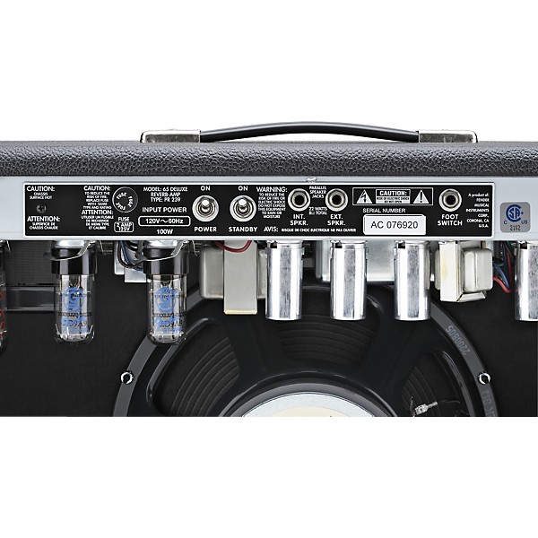 The '65 Deluxe Reverb's all-tube design with 12AX7 preamp tubes, 12AT7 tubes, 6V6 Groove Tubes output tubes and a 5AR4 rectifier tube accurately recreates the warm, organic distortion and touch-sensitive dynamics of 1960s Fender amps. From bright cleans to saturated overdrive, this amp delivers the definitive "Blackface" sound that has appeared on countless recordings.