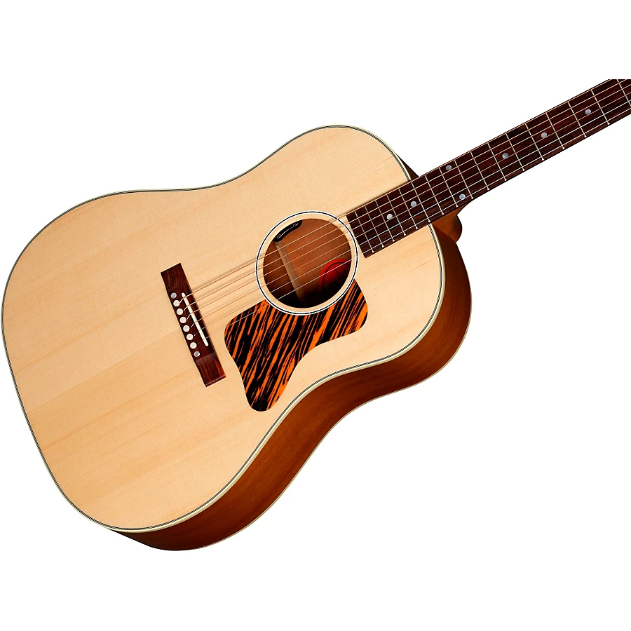 The Gibson J-35 '30s Faded is a recreation of the original J-35 which evolved from the Jumbo in 1936, a time when the Great Depression was still wreaking havoc on Americans. Gibson developed the J-35 to be a pared-down model that still offered musicians a warm, balanced instrument. The?J-35 '30s Faded delivers every bit of the seasoned, vintage look, feel and sound of the iconic J-35 with a satin finish that only adds to its rich legacy and undeniable vintage vibe. Discerning flattop players will love the rich, full-bodied tone from the vintage-inspired, round-shoulder beauty designed for superb playability and a simple aesthetic charm.