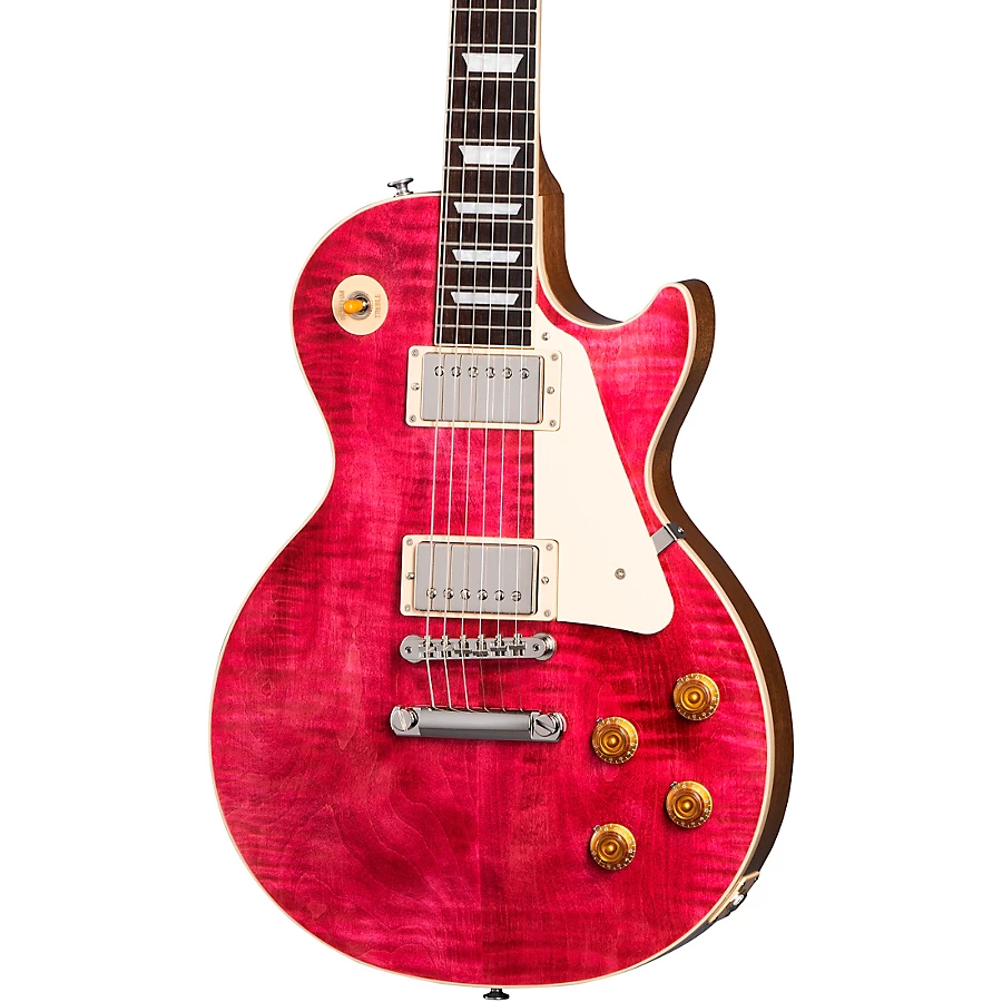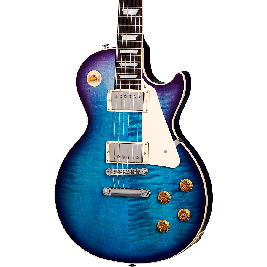 The Gibson Les Paul Standard '50s Figured Top electric guitar serves up vintage-inspired tone and looks. This solidbody stunner features a figured maple top on a mahogany back, just like the original. Its rounded '50s neck profile and trapezoid inlays evoke the era that shaped rock and roll. The Les Paul Standard '50s is ready to inspire you.