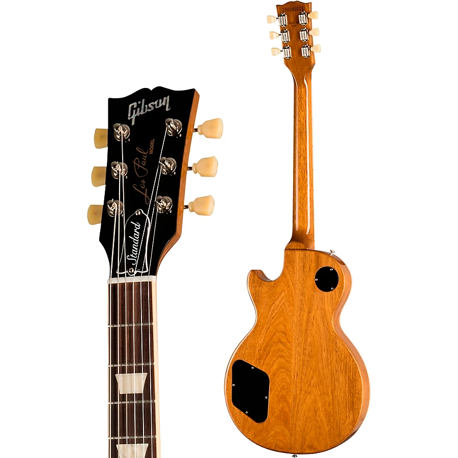 This Les Paul's mahogany neck has a rounded '50s profile for a fast, comfortable playing feel. Its rosewood fingerboard features 22 medium-jumbo frets and acrylic trapezoid inlays. A 12" fingerboard radius and 1.695" nut width strike a balance between vintage specifications and modern playability.
