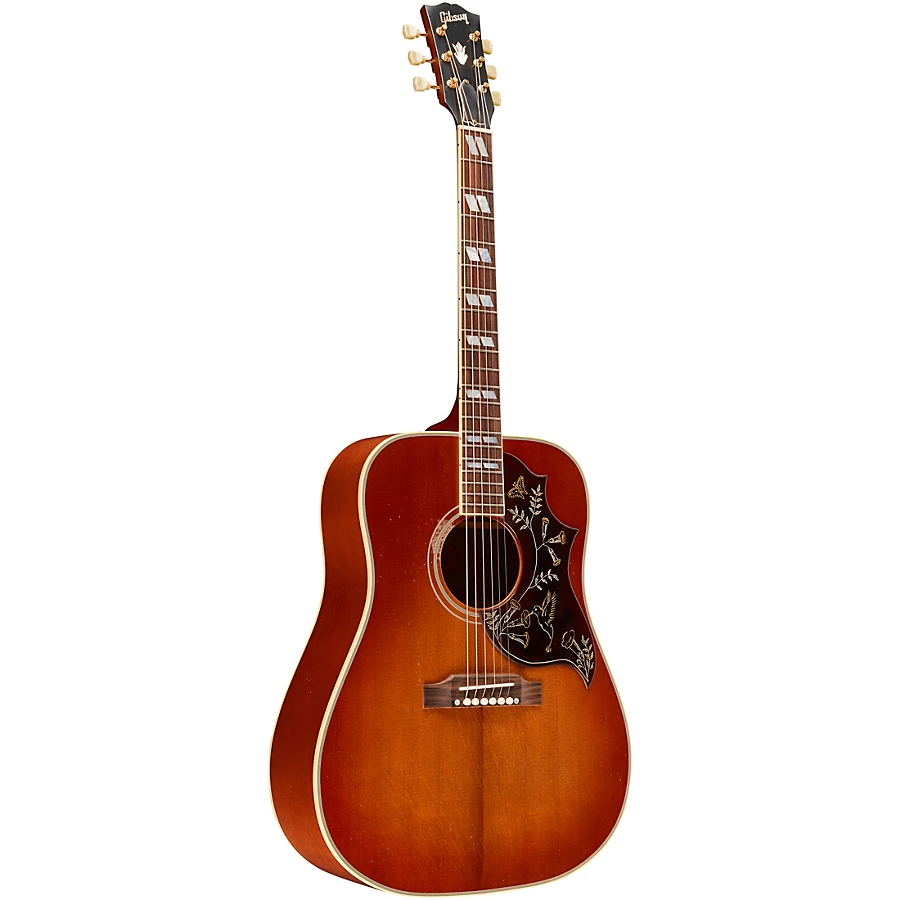 The 1960 Hummingbird from Gibson reflects the appearance and performance of the iconic originals. Featuring a square shoulder and thermally aged Sitka spruce top, the 1960 Hummingbird has been lightly aged by the skilled artisans of the Murphy Lab for a vintage look and feel. This is paired with lightly aged hardware which simulated decades of light play wear, giving it the character, vibe and feel of an original from the golden era of Gibson.