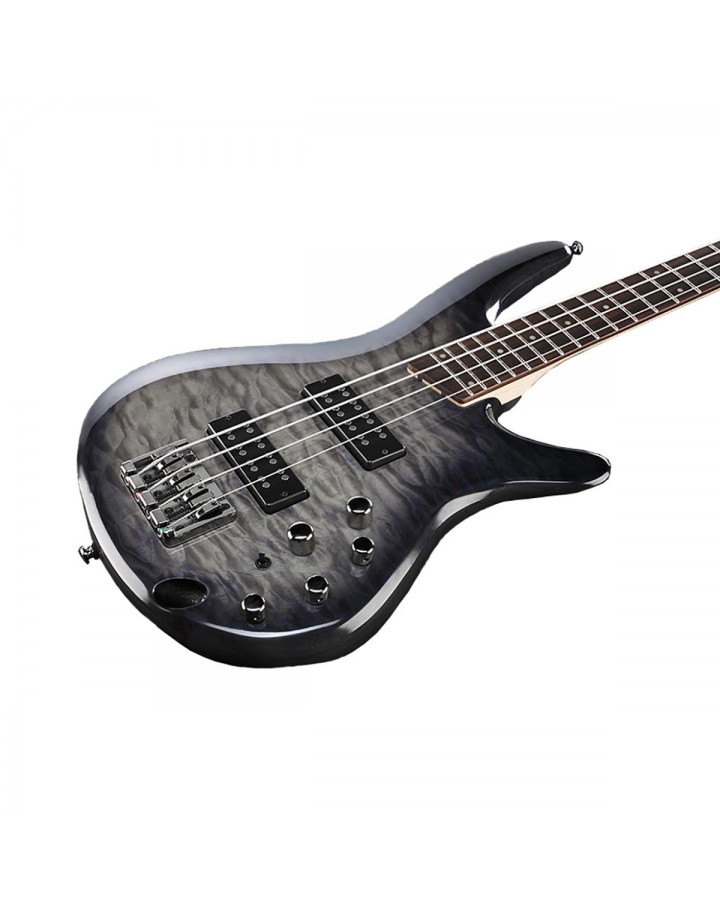 The SR400EQM has a really sleek body thanks to its shallow depth combined with deep double cutaway profile. The body's bevelled edges also provide you with enhanced playing support for a more comfortable playing position against your body. Ibanez have selected solid mahogany to construct the body which gives it a nice, lightweight feel, perfect for those who love to move about with ease onstage. The mahogany body is paired with a quilted maple top which shines through the colour finish beautifully.