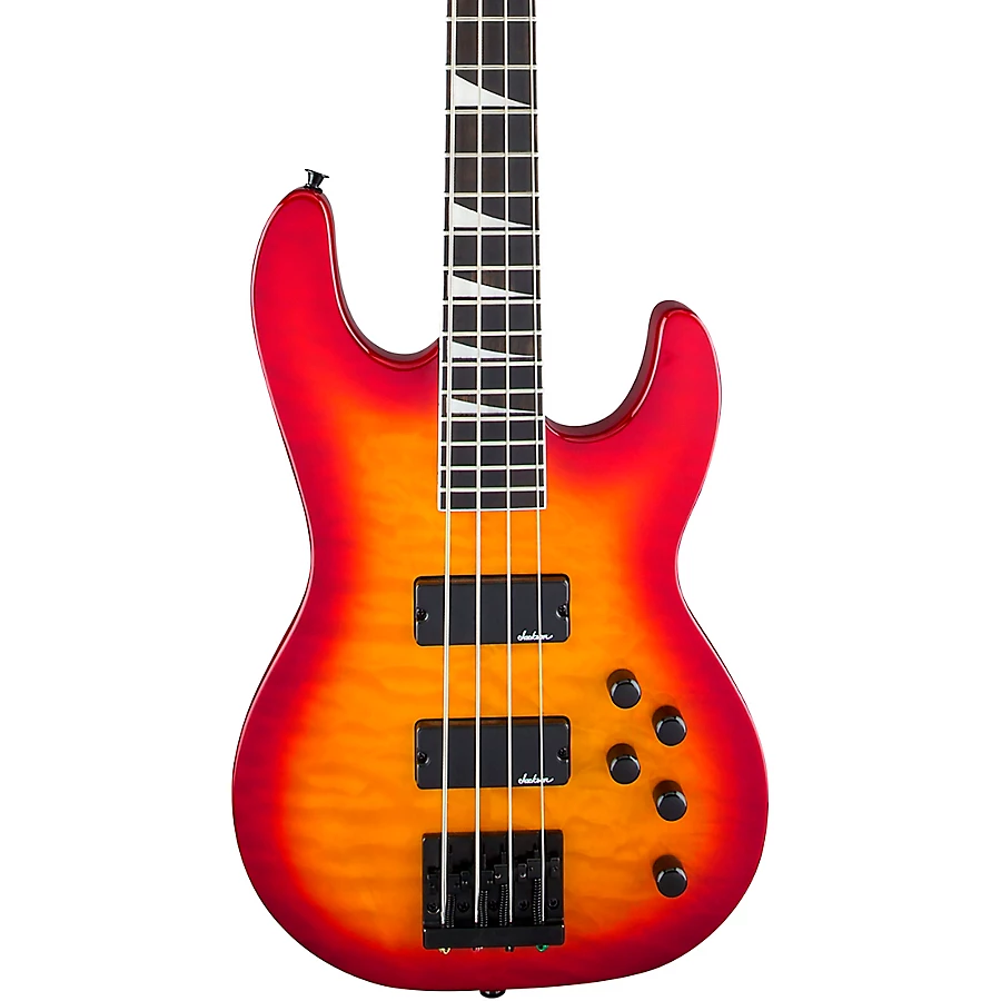 Dual Jackson high-output humbucking bass pickups provide a monstrous low-end growl, while HiMass bridge provides rock-solid stability. Tone can be shaped and refined with a pair of volume controls (neck and bridge pickups) and an active three-band EQ.