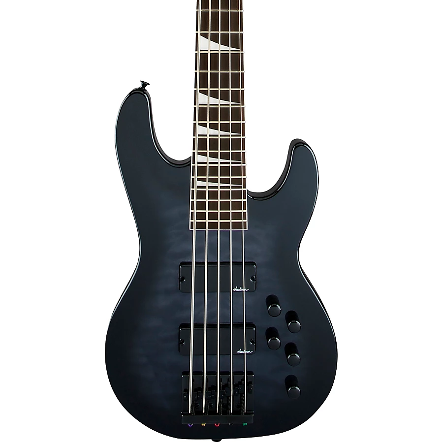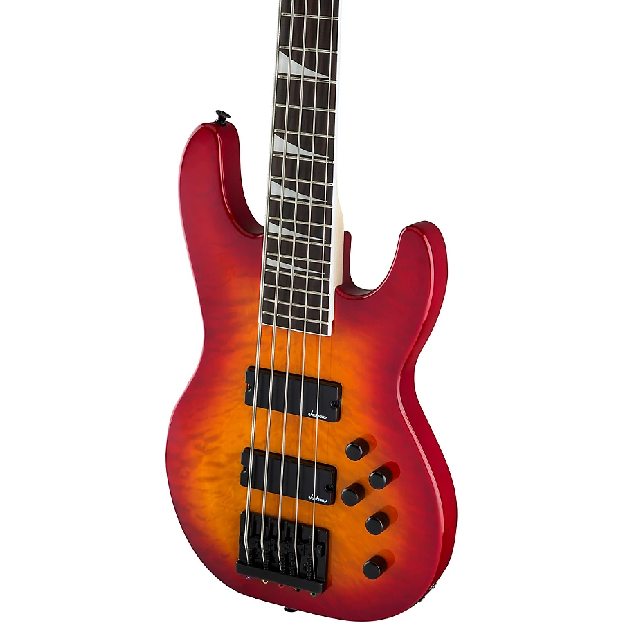 A thunderous bass loaded with vibe and value, the JS3VQ is available in a striking Cherry Burst, Transparent Black Burst or Transparent Red Burst finish with black hardware and a Jackson pointed 5-in-line headstock. Case sold separately.