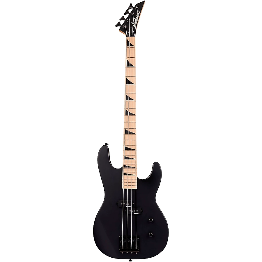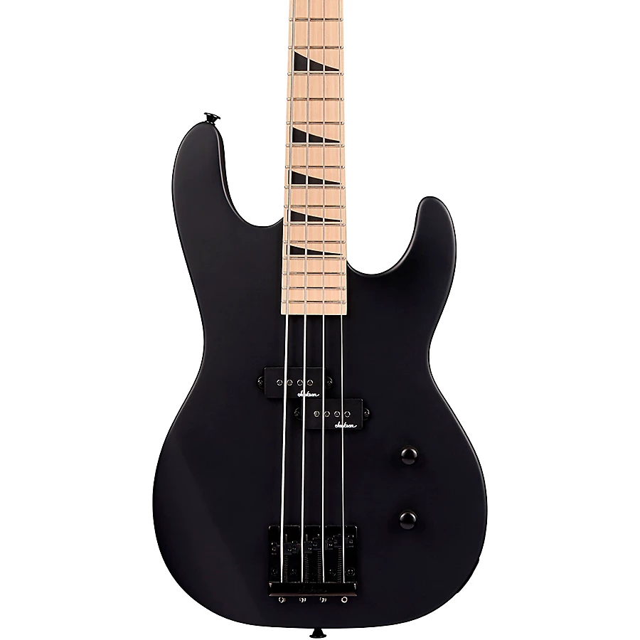 The Jackson limited-edition JS Series JS1M Concert bass rocks seismic sound, style and affordability. The 34"-scale, four-string JS1M Concert bass from Jackson features a lightweight and resonant poplar body and bolt-on maple neck with graphite reinforcement and scarf joint. Other premium features include a 12"-radius maple fingerboard with 24 jumbo frets and black sharkfin inlays.