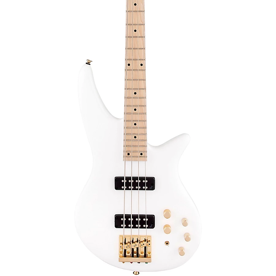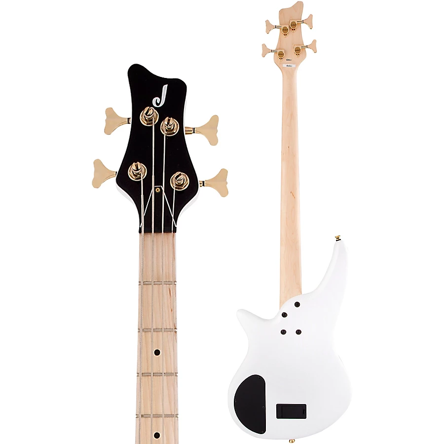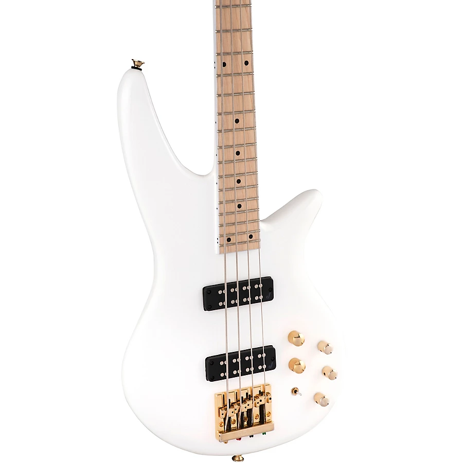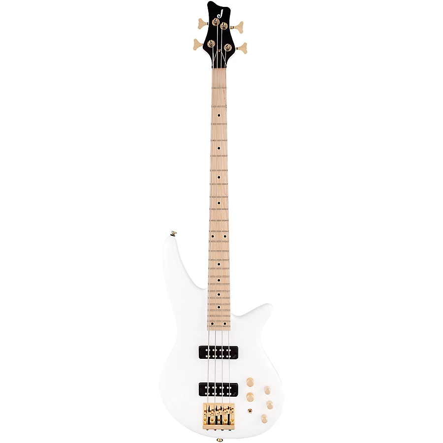 Featuring a unique 2x2 black headstock with an understated "J" logo, the budget-friendly SBXM IV comes in a classic Snow White finish with gleaming gold hardware.