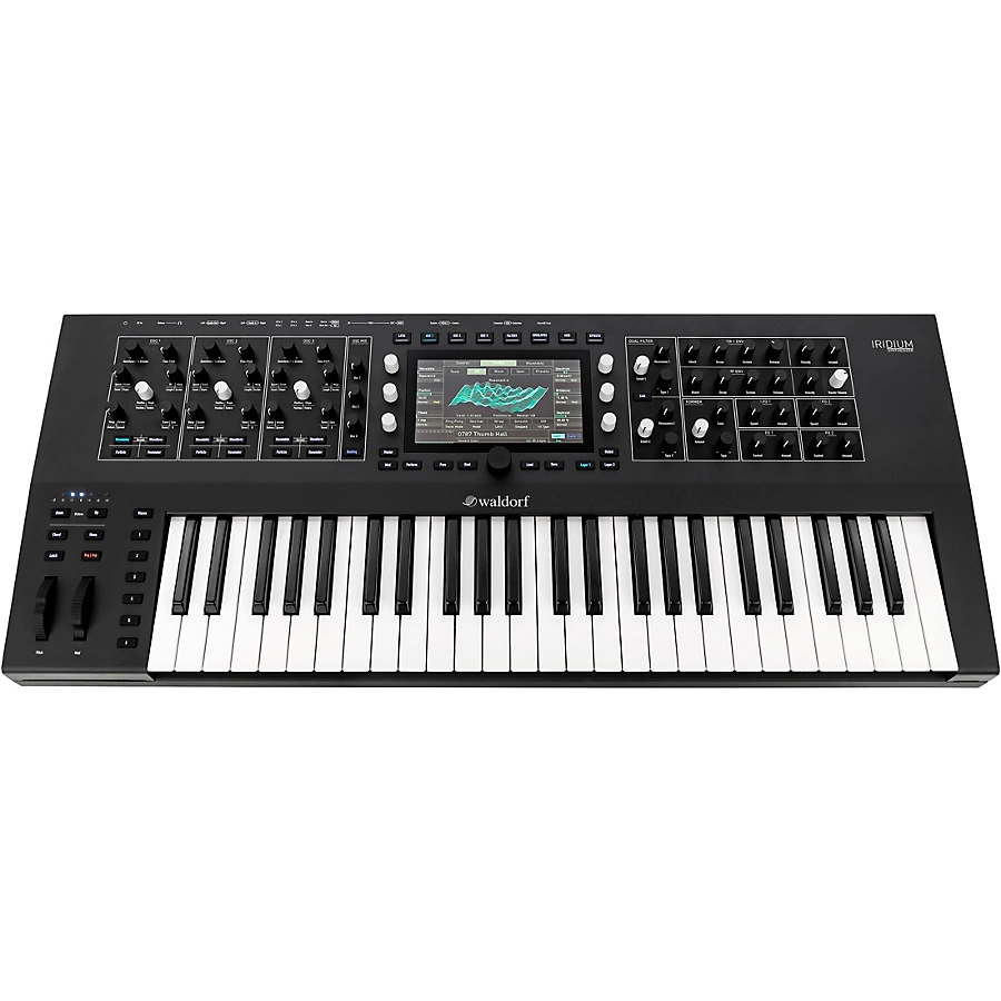 The jaw-dropping sound and power of the Waldorf Iridium Desktop Synthesizer are now available in a rock-solid, incredible-feeling 49-key instrument with polyphonic aftertouch. Explore 1,680 unique sounds and textures, save thousands of your own customizations and swap sounds with Iridium Desktop or the flagship Quantum Synthesizer. Explore the depths of wavetable, analog modeling, granular synthesis and more via Iridium's gorgeous color touch screen and comprehensive knob-per-function surface. Alongside fantastically expressive keyboard action, the Iridium Keyboard offers an expanded front panel with one-knob-per-function control as a workflow-raising result of this high-class synthesizer��s palpable physical makeover, also allowing for six freely programmable Macro buttons with which users can define functions from a wide range of features for additional performance control. The FATAR TP/8SK keyboard features polyphonic aftertouch and three contacts per key for new levels of response and playability. Best of all, tremendous tonal changes flow freely when playing the Iridium Keyboard live since polyphonic aftertouch is transmitted individually for each note played. Performers can conceivably play and hold down any number of keys simultaneously, subsequently moving each finger individually.