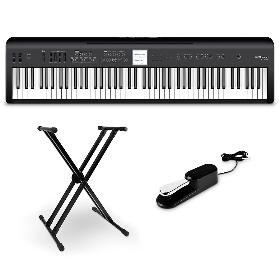 Roland FP-E50 Digital Piano With Double-Brace X-Stand and Sustain Pedal Black