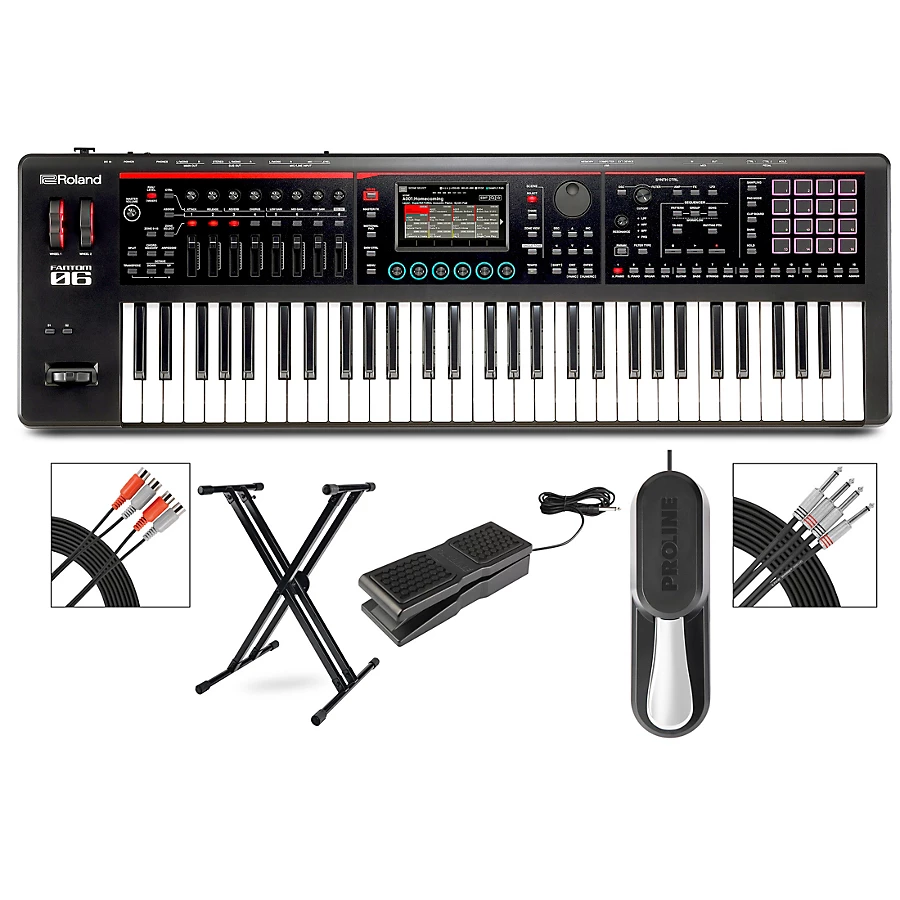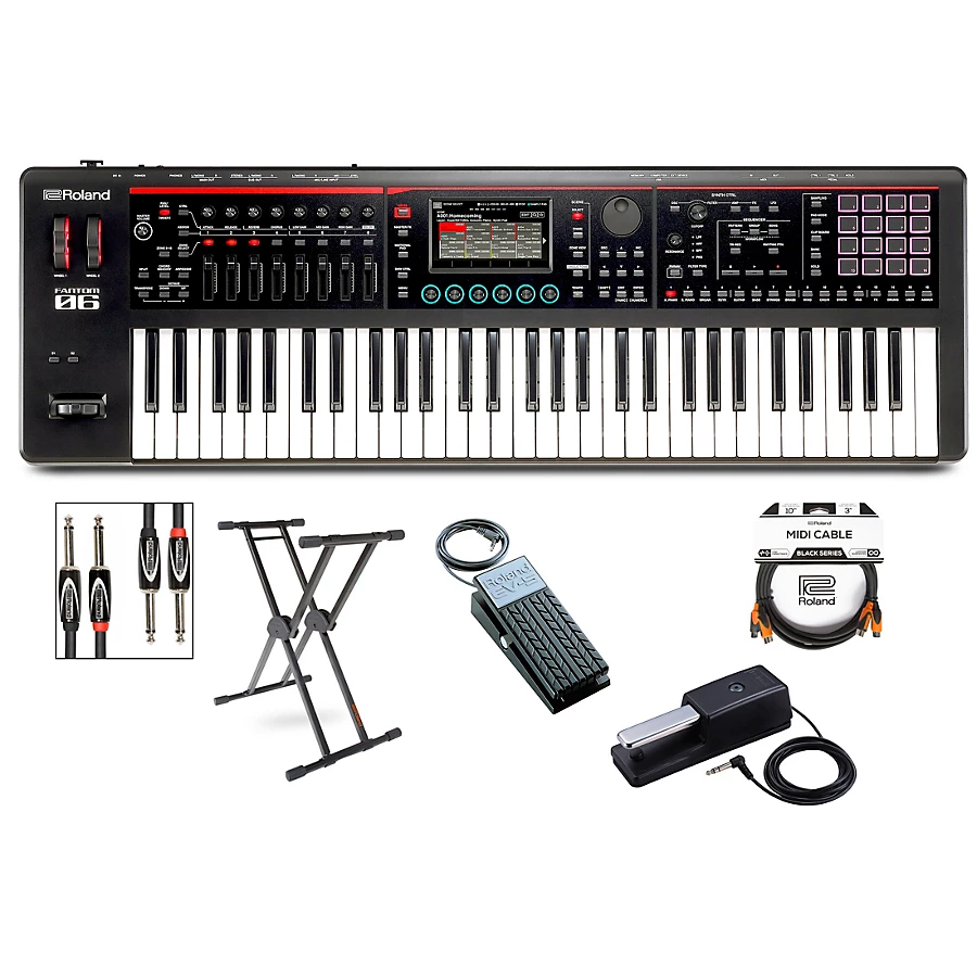 Roland FANTOM-06 Synthesizer With KS-20X, DP-10 and EV-5, Plus Black Series Audio and MIDI Cables