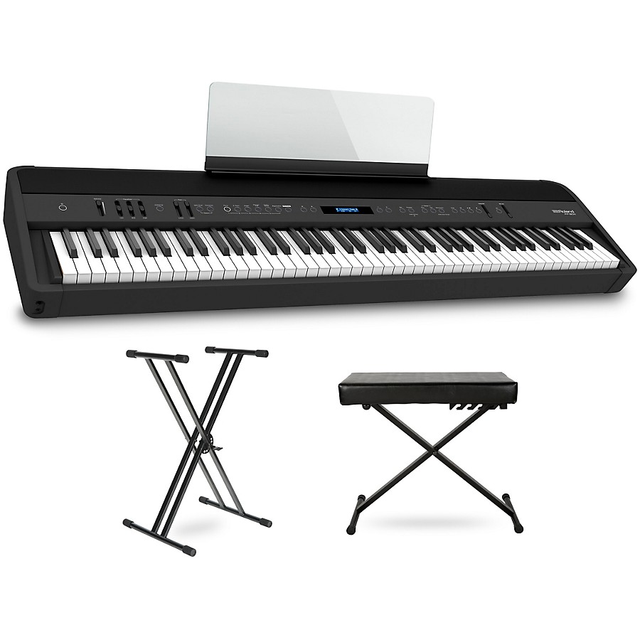 Roland FP-60X Digital Piano With Roland Double-Brace X-Stand and DP-10 Pedal Black