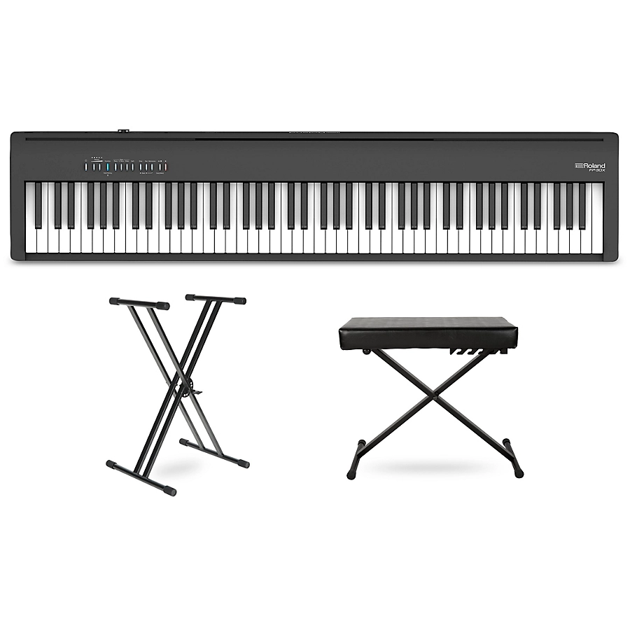 Roland FP-30X Digital Piano With Roland Double-Brace X-Stand and DP-2 Pedal Black