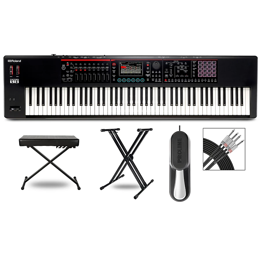 Roland FANTOM-08 Synthesizer With X-Stand, Sustain Pedal, Bench and Livewire Audio Cables