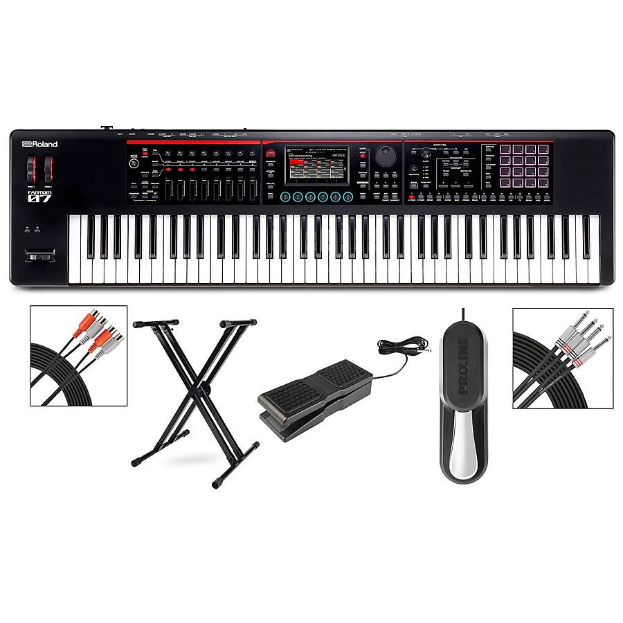Roland FANTOM-07 Synthesizer With KS-20X, DP-10 and EV-5 Plus Black Series Audio and MIDI Cables