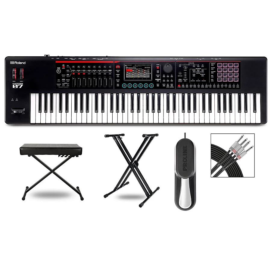 Roland FANTOM-07 Synthesizer With X-Stand, Sustain Pedal, Bench and Livewire Audio Cables
