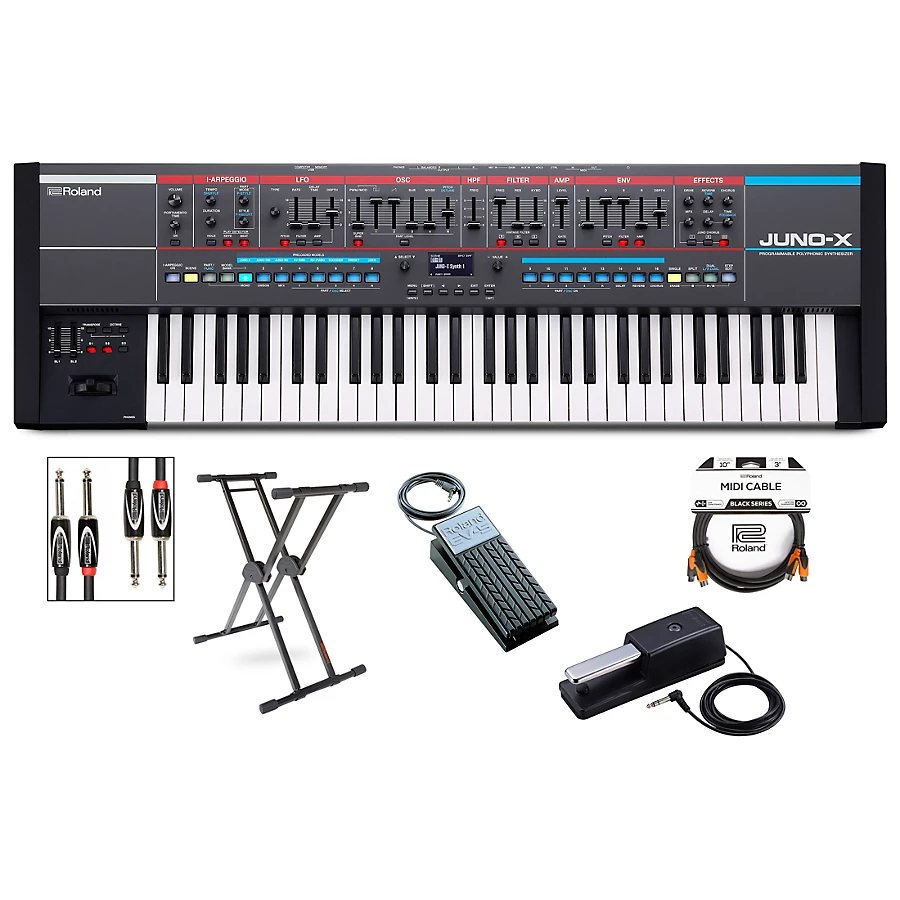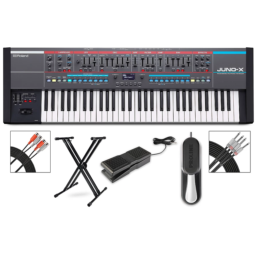 Roland JUNO-X Keyboard With Proline X-Stand, Sustain and Expression Pedal, Plus Livewire Audio & MIDI Cables