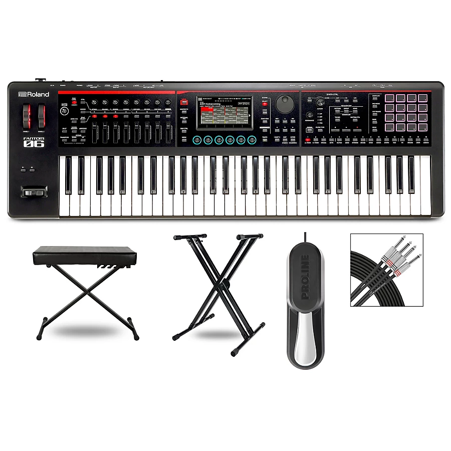 Roland FANTOM-06 Synthesizer With X-Stand, Sustain Pedal, Bench and Livewire Audio Cables