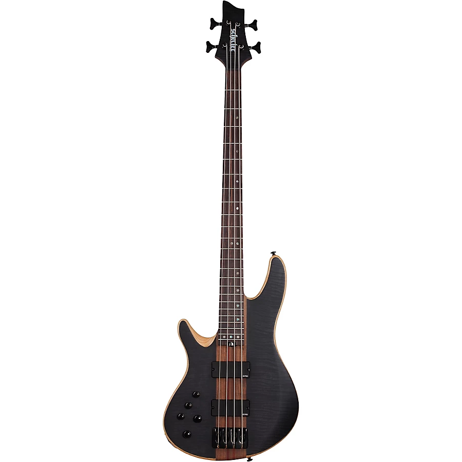 The walnut and padauk neck runs the length of the ash body, with two carbon fiber rods for reinforcement, creating an ultra-stable foundation for consistent tone and tuning. The thin C-shaped neck and 34" scale length ensure comfortable playability. The cutaway body provides access to higher frets, while the 16" radius fingerboard has 24 jumbo frets.