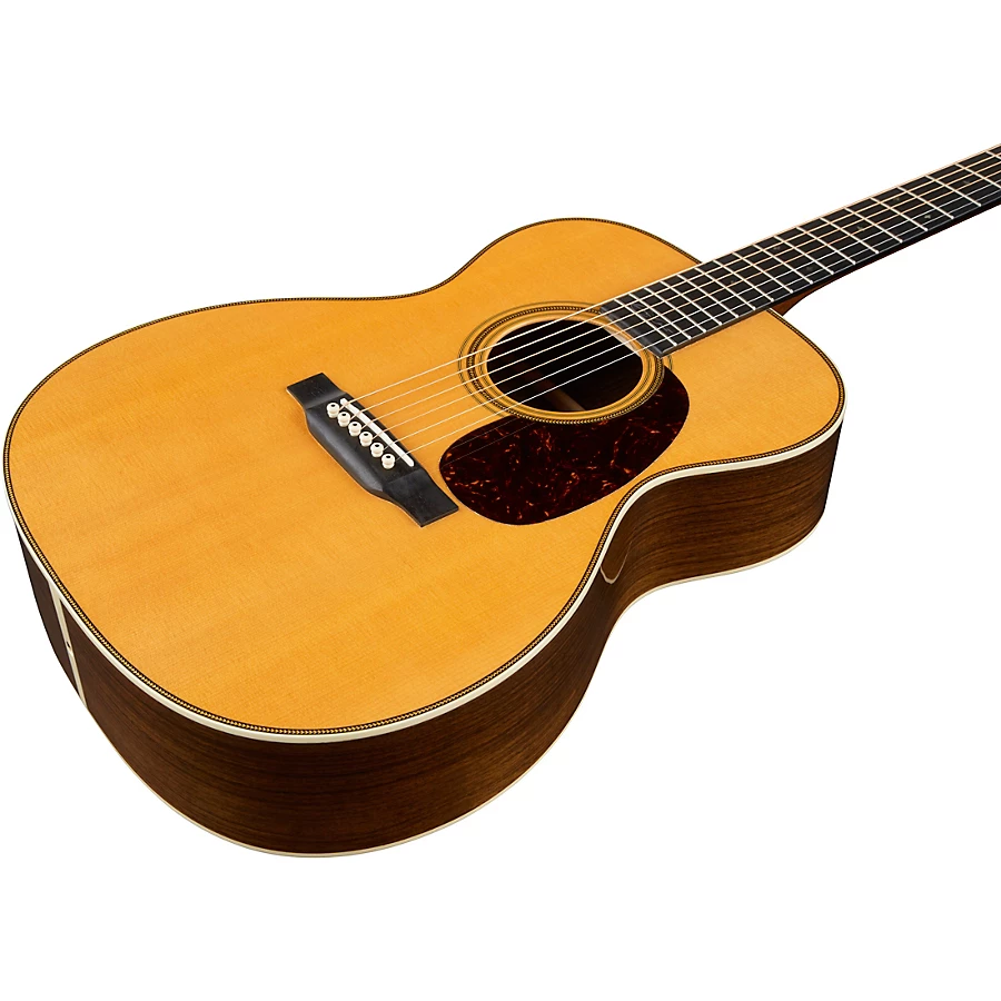 The 000-28EC blends vintage esthetics with modern playability. Solid East Indian rosewood and spruce have been carefully selected and paired to produce a balanced acoustic tone with rich overtones. The smaller 000 body and short scale cater to articulate, complex sounds. Nickel tuners, compensated bone nut and saddle, and dovetail neck joint ensure stability and sustain.