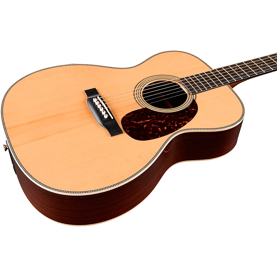 European flamed maple binding, stylish gold frets, gold open-gear tuners and a unique 1930s-style script logo inlaid in pearl on the headstock give it a look to match its sound. Ultra-modern features like Liquidmetal bridge pins with red dots and a composite carbon fiber bridgeplate boost volume without adding weight, making this a guitar player's dream. Adjustable Aura imaging technology included in the new Fishman Aura VT Blend electronics allows more control over the voice of the guitar than ever before. The Martin 000-28E Modern Deluxe comes with a hardshell case and is strung with Martin Authentic Acoustic Lifespan 2.0 light gauge strings.