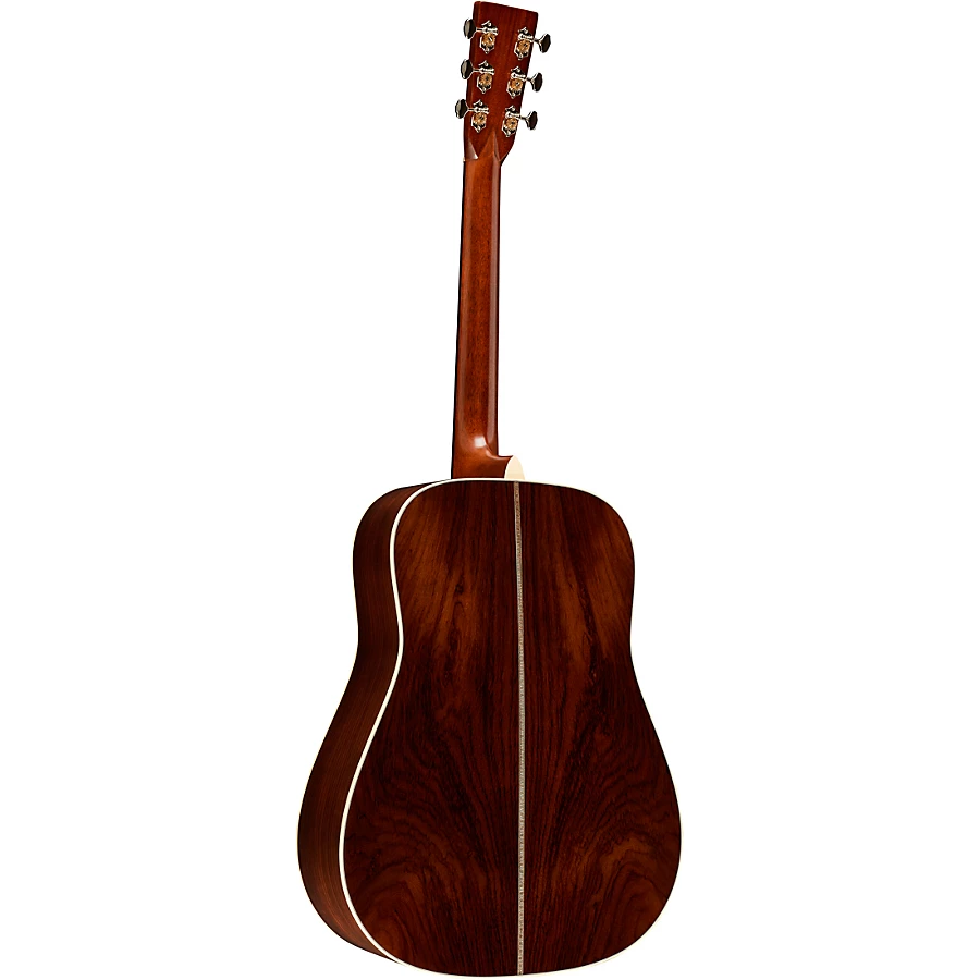 The Martin Custom Shop Special D28 Dreadnought Bearclaw Sitka-Wild Grain East Indian Rosewood acoustic guitar is crafted from hand-selected woods��premium bearclaw Sitka spruce for the top and wild grain East Indian rosewood for the back and sides��by the teams at Martin and Guitar Center. While the Special D28 delivers the historical look and basic sound of vintage Martins, its forward-shifted X bracing produces a voicing with enhanced bass response, and the modified low-oval neck profile and high-performance taper offer outstanding playability. Other appointments include antique-white binding, a polished wild grain rosewood head plate with CFM logo, East Indian rosewood side strips, diamonds and squares fingerboard inlays and nickel, vintage-styled Grover machine heads.