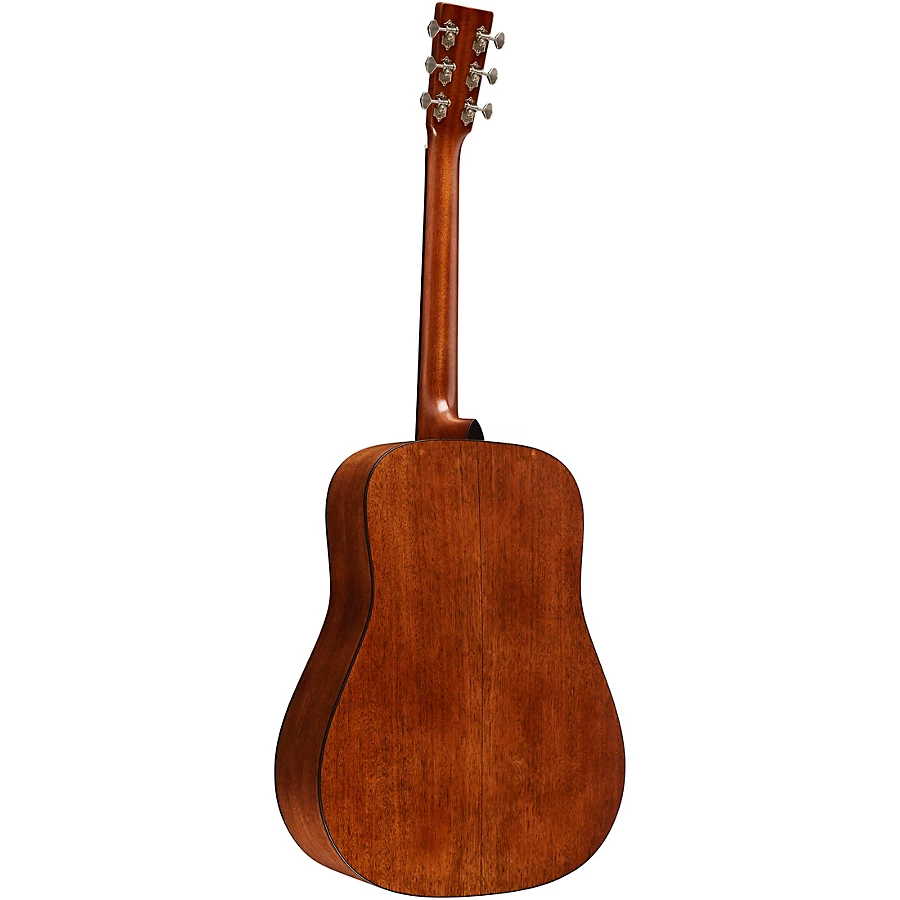 The D-18 Street Legend's forward X-bracing is shifted slightly forward to generate a robust low end with enhanced clarity in the midrange and treble registers. This innovative bracing pattern allows the solid mahogany top to vibrate freely, producing a loud, balanced tone with shimmering highs, warm mids and a tight, punchy low end. The result is a modern acoustic sound suited to a variety of musical styles.