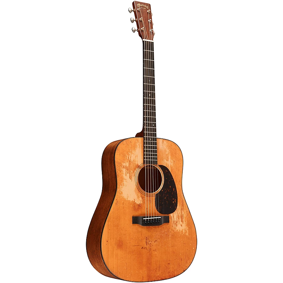 The D-18 Street Legend's aged natural finish is distressed to resemble a guitar that has been cherished for decades. The relic'ing process creates a patina of dents, dings, scratches and worn edges that give the D-18 Street Legend a rustic, lived-in vibe. Underneath its vintage-inspired exterior beats the heart of a precision-engineered modern acoustic, constructed using computer-aided design and time-tested traditional woodworking techniques.