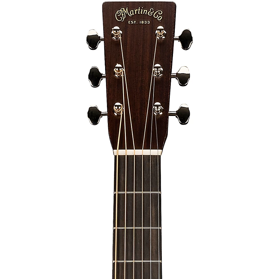 The D-28 has a mahogany neck with a modified low oval profile that provides a comfortable feel for most playing styles. The neck has a high-performance taper that is slightly narrower at the nut for an easy grip and wider at the 12th fret for less hand cramping. The ebony fingerboard has a 16" radius and 1-3/4" nut width.