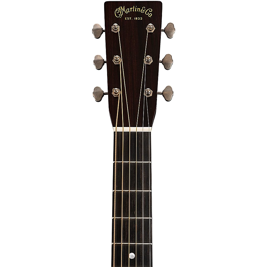 The Martin D-28 Street Legend acoustic guitar brings attitude and authenticity to your playing. This dreadnought acoustic guitar features a spruce top with subtle visual wear inspired by historic models in Martin's renowned museum, giving it a well-loved look and vintage vibe. The D-28 Street Legend is crafted with resonant East Indian rosewood back and sides and scalloped X-bracing for a full, dynamic tone. Its mahogany neck has a Modified Low Oval profile for comfort, while an ebony fingerboard and bridge provide a smooth playing surface. Finished in satin and equipped with nickel open-gear tuners, the D-28 Street Legend looks and sounds like it's been out on the road for years.