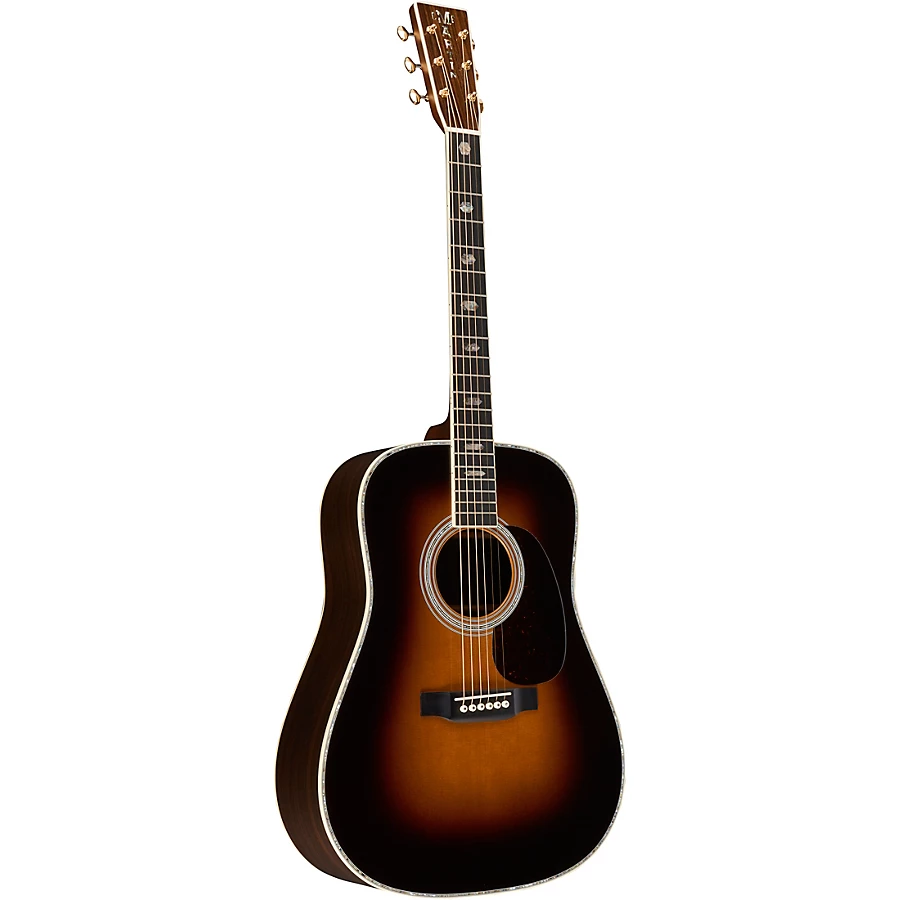 The Martin D-41 Standard dreadnought acoustic guitar combines the coveted tone of 1930s Martins with today's ergonomic design. Since 1969, the D-41 has delivered a bold, punchy sound prized by professionals. Now, modified bracing and a slim neck provide exceptional clarity and comfort. Own a piece of acoustic history with this expertly crafted instrument.