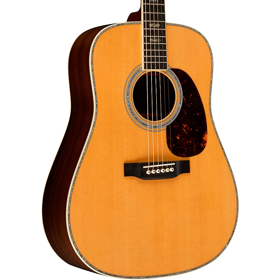 While the D-41 Standard echoes vintage Martins, its modified low-oval neck and 1-3/4" nut provide modern playability. The slim, tapered profile allows effortless movement across the ebony fingerboard's 20 frets. Whether fingerpicking complex chords or soloing at higher positions, the D-41 plays fast and feels familiar to any guitarist.