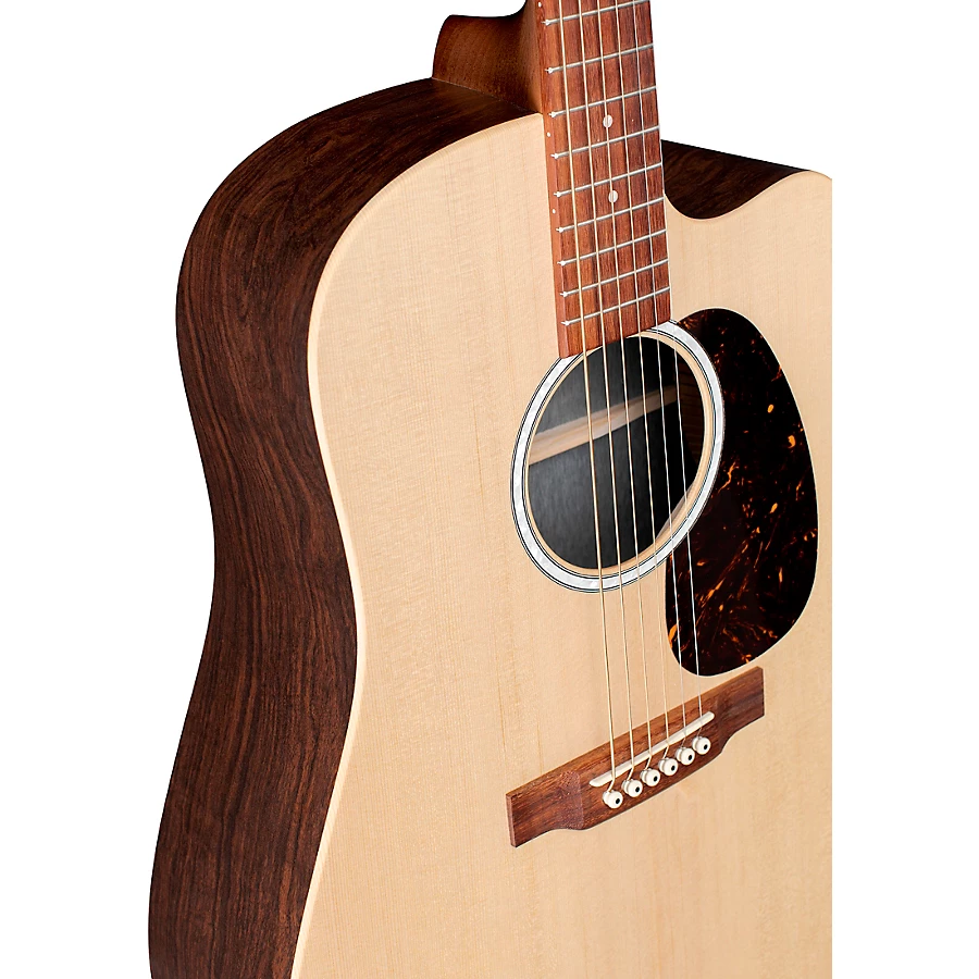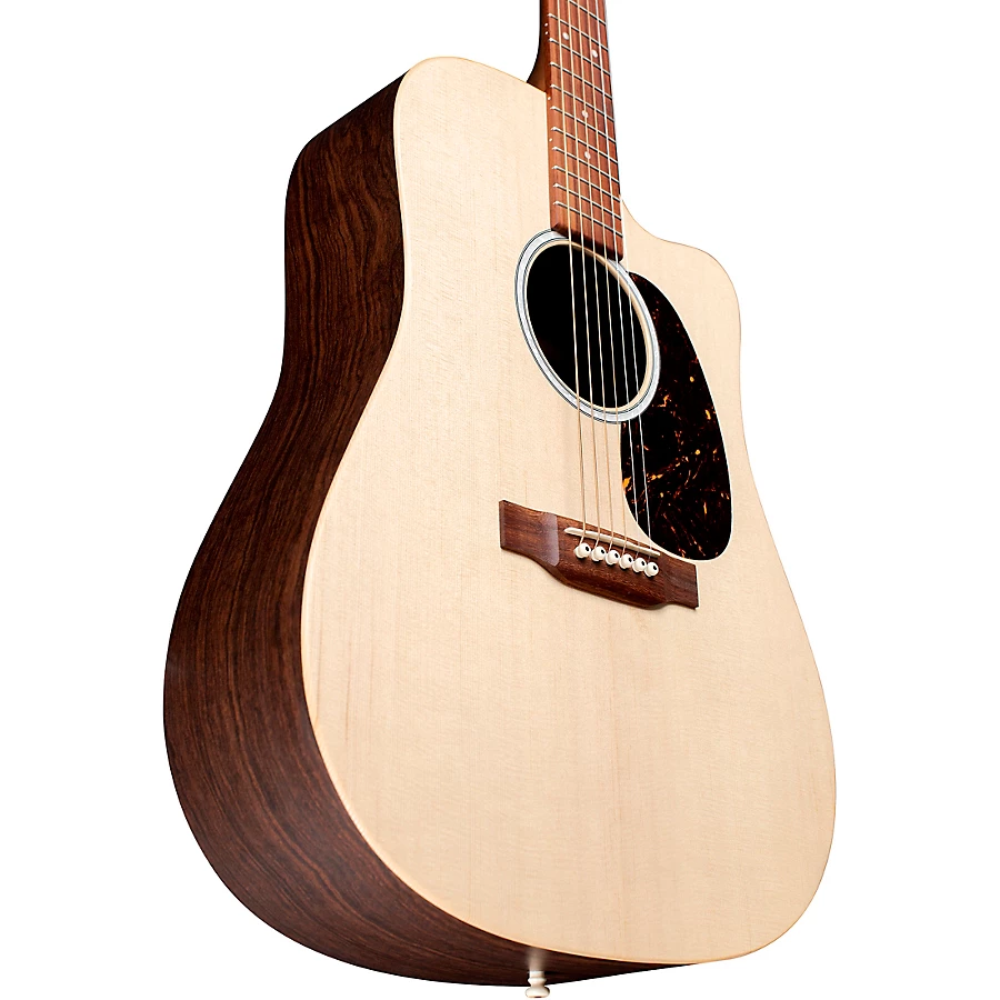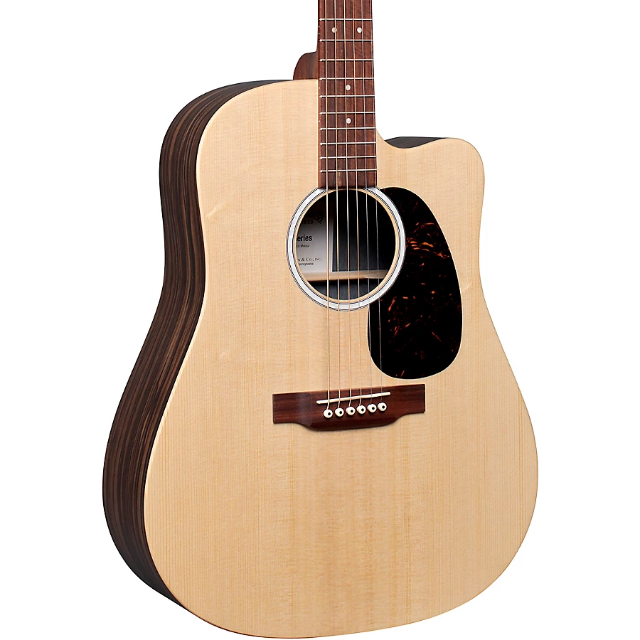 Part of Martin's 2106 X Series, the DCX1RAE is a dreadnought cutaway model made up of a spruce top paired with rosewood-pattern HPL back and sides for a great sounding, and highly durable guitar. A FSC Certified Richlite fingerboard and bridge and Fishman Sonitone electronics complete this model and make this guitar an understated, eye-catching beauty with great durability. Other appointments include a modern belly, drop-in saddle, non-scalloped X bracing, a hand-rubbed, brown birch laminate neck with a Performance Artist profile and High Performance taper for, well, a much easier playing experience, and multi-stripe rosette. Best of all this model includes sustainable wood certified parts so you can feel good knowing you are doing right by your music and the environment.?