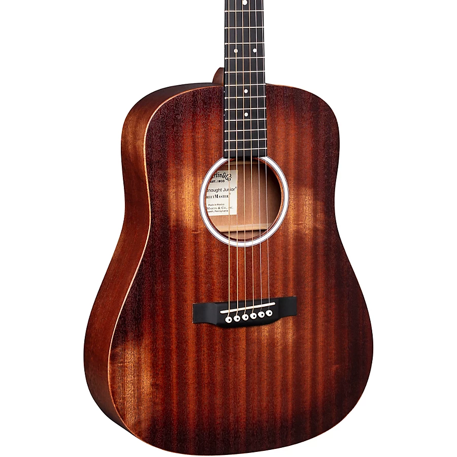 The DJr-10E StreetMaster acoustic from Martin delivers the booming, full sound of a dreadnought in a smaller, more playable size. Featuring a distinctive, distressed finish for a worn look, the StreetMaster acoustic is both comfortable and playable with a thin body and a high-performance neck taper. Equipped with Fishman Sonitone electronics, this acoustic guitar is easy step on stage or into the studio and play your heart out. Whether this is your first guitar or another excellent addition to your collection, the DJr-10E StreetMaster provides reliable, clean acoustic tone.