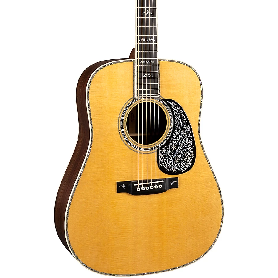 The D42 Special's most striking feature is its intricate pearl inlay work. Former Martin employee Dick Boak created a floral design to be laser engraved, but the material proved unsuitable. Decades later, Boak thought the design would make a stunning inlay. Working with expert inlay artists, Boak's vision came to life. Chris Martin IV approved a prototype and asked Boak to extend the design across the fingerboard and headstock. The result is a masterwork of craftsmanship that turns the D42 Special into a work of art.