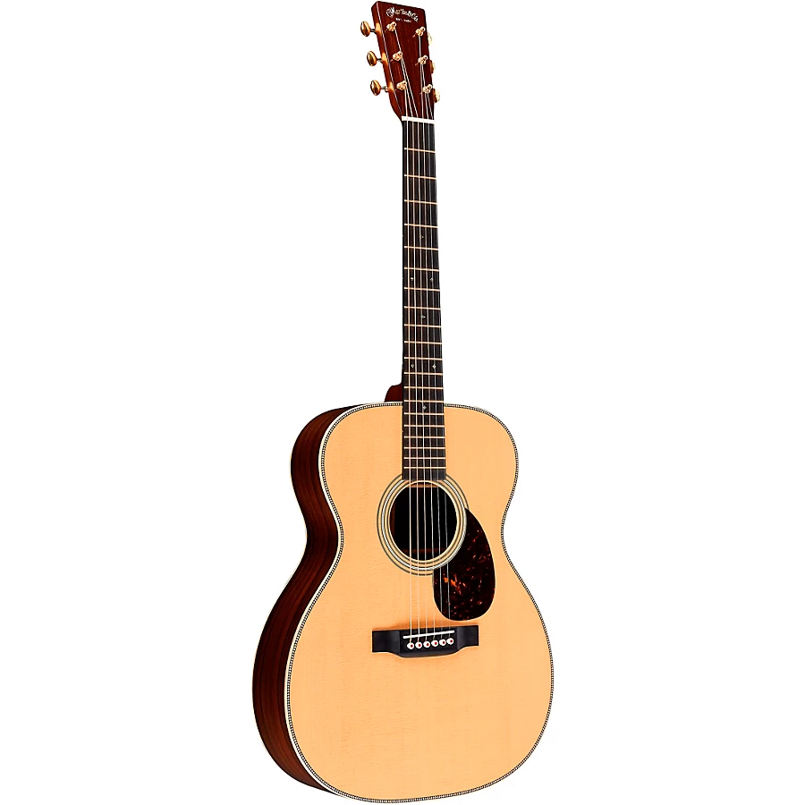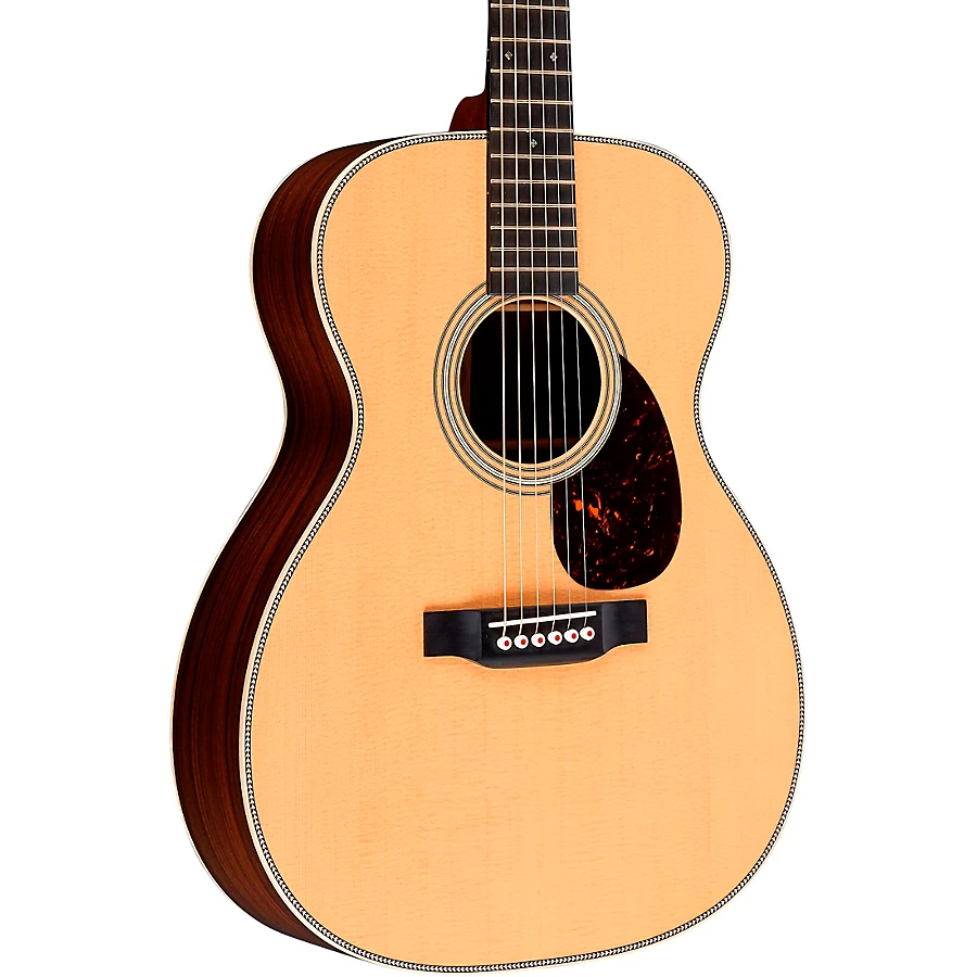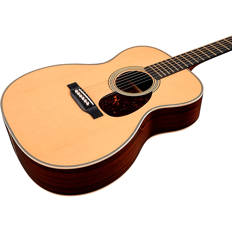 The Martin OM-28 Modern Deluxe Orchestra acoustic guitar, a revolutionary new take on the legendary OM-28 that fuses vintage appointments with cutting-edge enhancements. Featuring a solid Sitka spruce Vintage Tone System top and East Indian rosewood back and sides, the OM-28 Modern Deluxe delivers the rich, complex tone that Martin is renowned for. Unique touches include stylish gold frets, open-gear tuners and a 1930's-inspired script logo, along with an ergonomic neck shape for playing comfort. This innovative instrument is crafted using time-honored techniques like dovetail neck joints and natural protein glue, yet also includes modern features such as Liquidmetal bridge pins and a lightweight carbon fiber bridgeplate for added volume and sustain. Available in Natural finish, the OM-28 Modern Deluxe is an acoustic guitar like no other��combining classic beauty with contemporary performance to inspire a new generation of players.