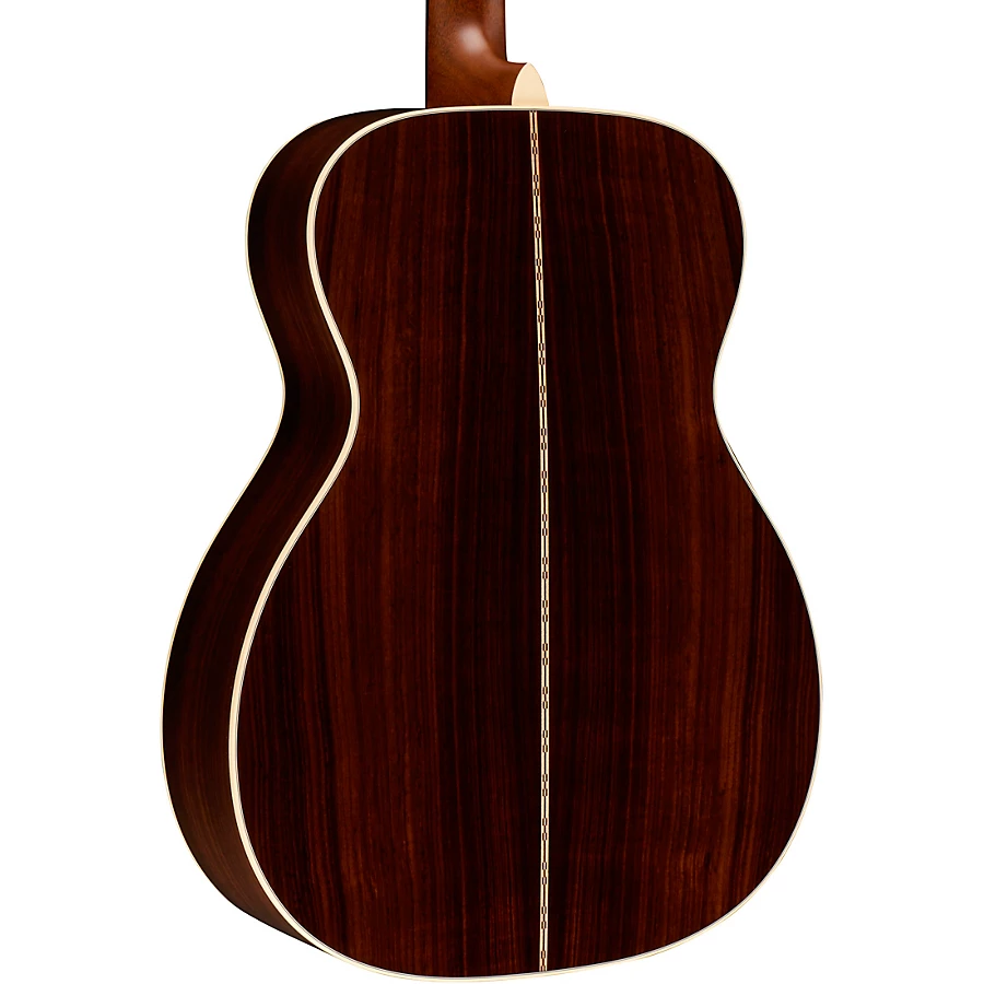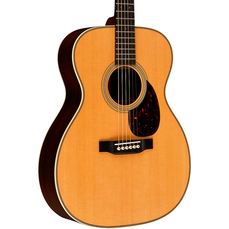 Martin has upgraded the 2018 OM-28 Orchestra to include a modified low-oval neck with High Performance neck taper and 1-3/4" nut. It also has an?aging toner, herringbone inlay, antique white binding, 5/16"?scalloped X-bracing, Diamonds and Square fingerboard inlays, and a bone nut and saddle.?In final assembly, the instrument receives a computerized Plek setup to dial in the action for the best possible string performance for each instrument. The result is an instrument with the optimal sound and feel. You won��t want to put this one down.
