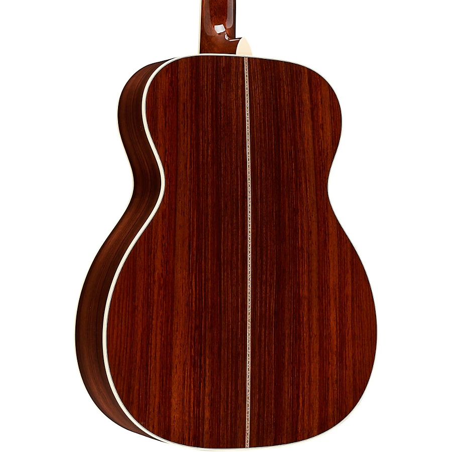 The stylish design of the OM-42 Standard Orchestra adds panache to the classic tone and feel of East Indian rosewood back and sides, a spruce scalloped X-braced top, and hand-fit dovetail neck joint. Open-geared tuners, antique white binding, polished gloss finish, a tortoise colored pickguard and abalone pearl inlay offer shimmer with exemplary tone. Long scale and a sleek modified low-oval neck with narrow taper mean strumming and picking for hours in comfort and bliss.