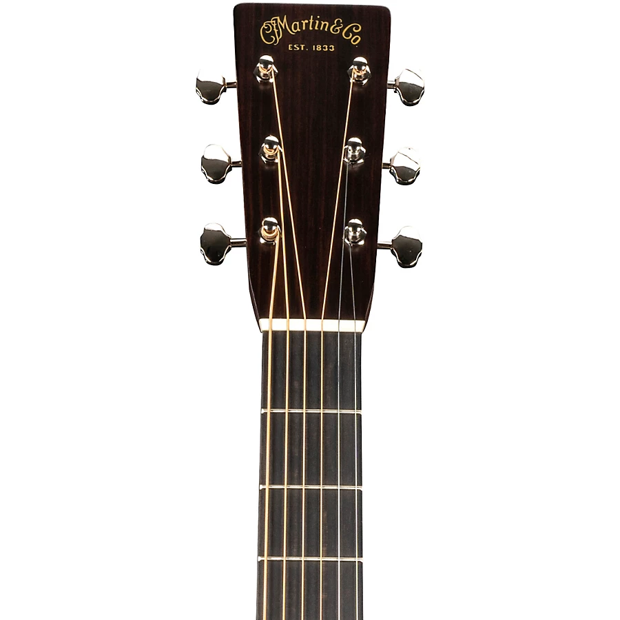 The Martin SC-28E acoustic-electric guitar pairs decades of experience crafting iconic instruments with innovative features for the discerning modern player. This guitar has a resonant solid spruce top, and East Indian rosewood back and sides, boasting revered solid-wood Martin construction, and producing full, balanced tone with articulate highs and earthy lows. With its comfortable profile and smooth satin finish, the SC-28E's patented Sure Align neck system allows easy playing all the way up the fretboard. Timeless appointments like antique white binding and nickel open-gear tuners give the SC-28E a refined, vintage-inspired look. As part of the Standard Series, the SC-28E is handcrafted in Nazareth, Pennsylvania, using time-honored construction techniques and exquisite attention to detail.