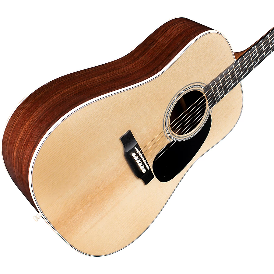 To complement the aged spruce top, Martin selected East Indian rosewood for the back and sides. This tonewood combination has been used on Martin dreadnoughts for nearly a century, prized for its articulate highs, punchy midrange and controlled low end. The rosewood's dense grain also provides a durable foundation for the guitar's complex tone, allowing it to open up and mature over years of playing.