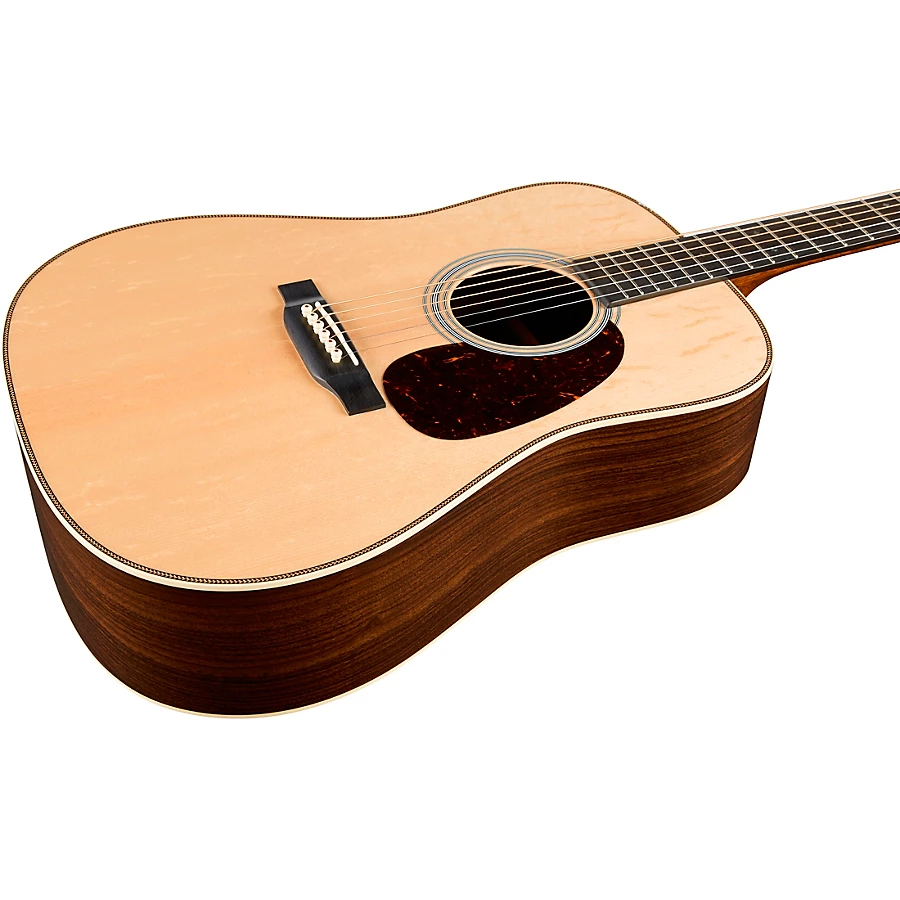This 28 Style Custom Shop dreadnought is absolutely amazing. Showcasing a premium hand-selected Sitka spruce Bearclaw top with the Style 28 rosette, herringbone binding and premium rosewood back and sides, this Custom guitar not only looks unique, but sounds outstanding. A great feeling high performance taper neck with ebony fingerboard with Style 28 inlays is topped off with an East Indian rosewood headplate with a C.F. Martin script logo. This Custom Shop dreadnought is the perfect guitar for any player looking for the tradition Martin sound with a unique Bearclaw spruce top.