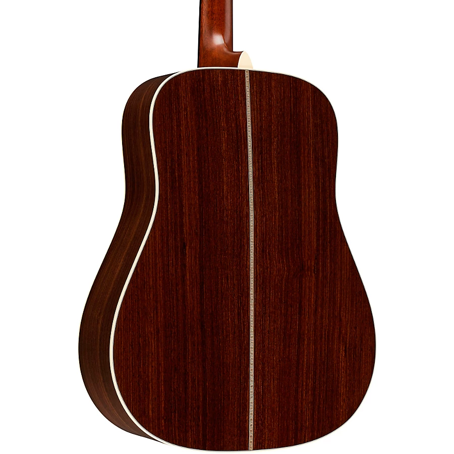 This heirloom-quality instrument features Indian rosewood on the back and sides. The satin-finished mahogany neck has a comfortable, modified low-oval-profile with a high performance taper. Mother-of-pearl dots line the black ebony fretboard.