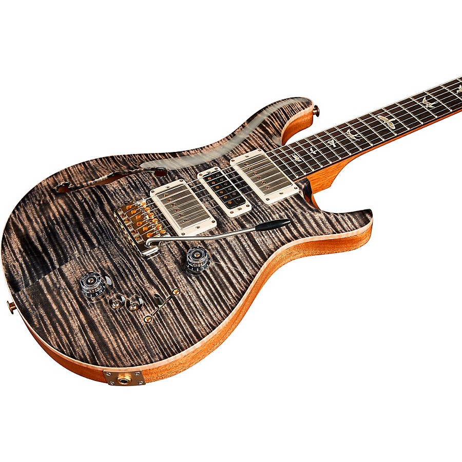 With 12 pickup combinations in total, there are plenty of tones to explore along with the tone control for added growl and shimmer. The volume levels between the humbucking and single-coil settings remain very even, and the semi-hollowbody with single f-hole provides a welcome airiness and depth to the guitar��s tone.?Additional features include a maple top, mahogany back, mahogany neck, rosewood fretboard, Phase III tuners and PRS Gen III patented tremolo.