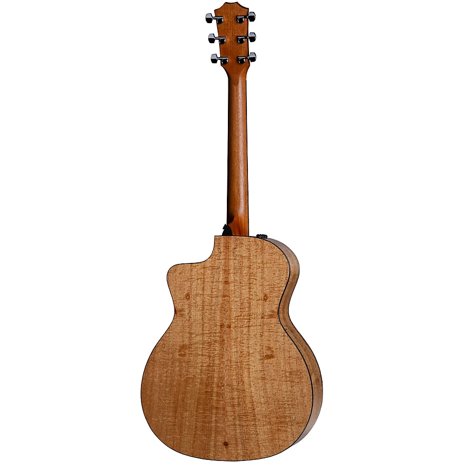 Taylor's original Grand Auditorium body yields articulate tone with clarity across the tonal spectrum. Comfortably sized and expertly braced, the GA body style is a perennial favorite for its versatility and balanced acoustic voice. Layered koa back and sides complement the solid koa top for a stunning all-koa look, while providing enhanced stability for travel and changes in climate. An ebony fretboard and bridge offer a smooth playing surface and visual contrast.