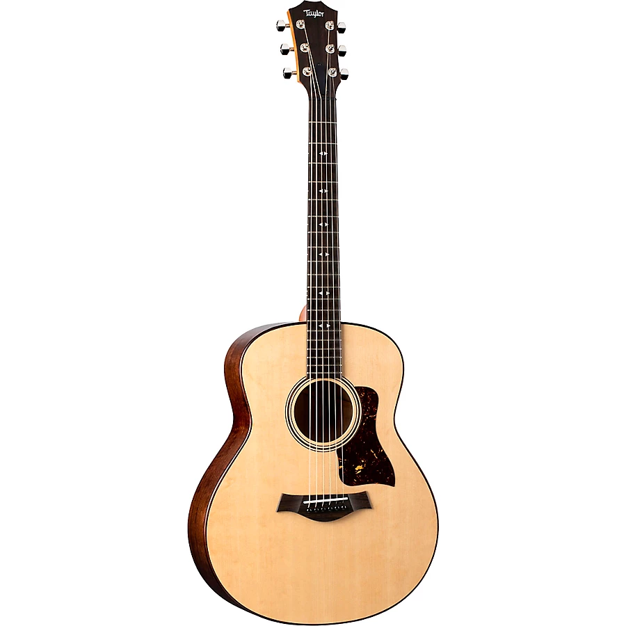 The enormous popularity of the GS Mini over the last decade informed the design of the Grand Theater. Rather than pursuing a better GS Mini, Taylor master luthier Andy Powers designed a new guitar entirely: different body and neck dimensions, with new bracing, made with solid wood. It preserves the playing comfort of a smaller guitar while also producing a fuller-sounding voice. And its compact form makes it ultra-responsive to a light touch. Between the unique body dimensions, scale length, nut width and bracing, it introduces not just a new body style, but a new guitar category in both feel and sound.