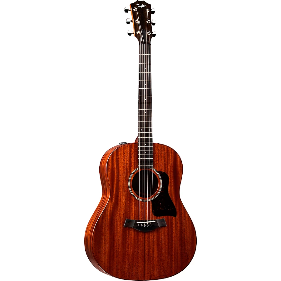 Facing an unprecedented global crisis, Taylor turned to what they know best, designing and building guitars. Andy Powers and Bob Taylor decided to push themselves to create a new series of US-made, solid-wood guitars that are distilled into the essential elements of premium musical performance, and deliver these instruments at an ultra-affordable price. The 2022 AD27e features Taylor's innovative Grand Pacific body shape, V-Class bracing, all solid-wood construction, chamfered body edges, eucalyptus fingerboard/bridge/peghead, a super thin matte finish, single-ring wood rosette and ES2 electronics. The AD27e ships in Taylor's AeroCase for maximum protection and portability.