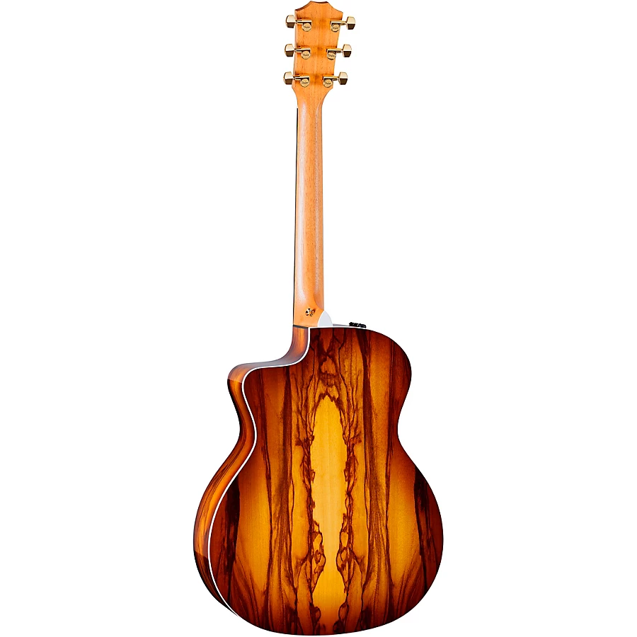First introduced in 1994 by Bob Taylor, the Grand Auditorium body style quickly became Taylor's most popular body style. The Grand Auditorium strikes a balance between the flatpicking-favorite dreadnought and fingerstyle-favored Grand Concert body styles. With a clear, articulate voice that maintains plenty of body, and that responds beautifully across the instrument's entire dynamic range, this body style is brought to a new level of looks with the stylish Venetian cutaway and sunburst finish, along with the carefully selected tonewoods found in the 214ce DLX Ziricote.