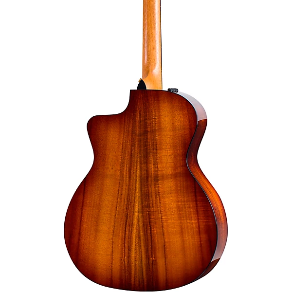 The solid Hawaiian koa top of the Taylor 224ce-K DLX organically compresses its sound, reproduces precise fundamentals like those typically heard in mahogany, and adds more shimmer in the highs and fullness in the lows to balance the instrument's voice. Combining transient snap and forward mids, the layered koa back and sides complement the top beautifully, creating warm, natural, exuberant acoustic tone, representing koa's signature midrange, low-end warmth and top-end sparkle. And like a fine wine, the 224ce-K DLX's koa body will mature over time, becoming even richer and sweeter.
