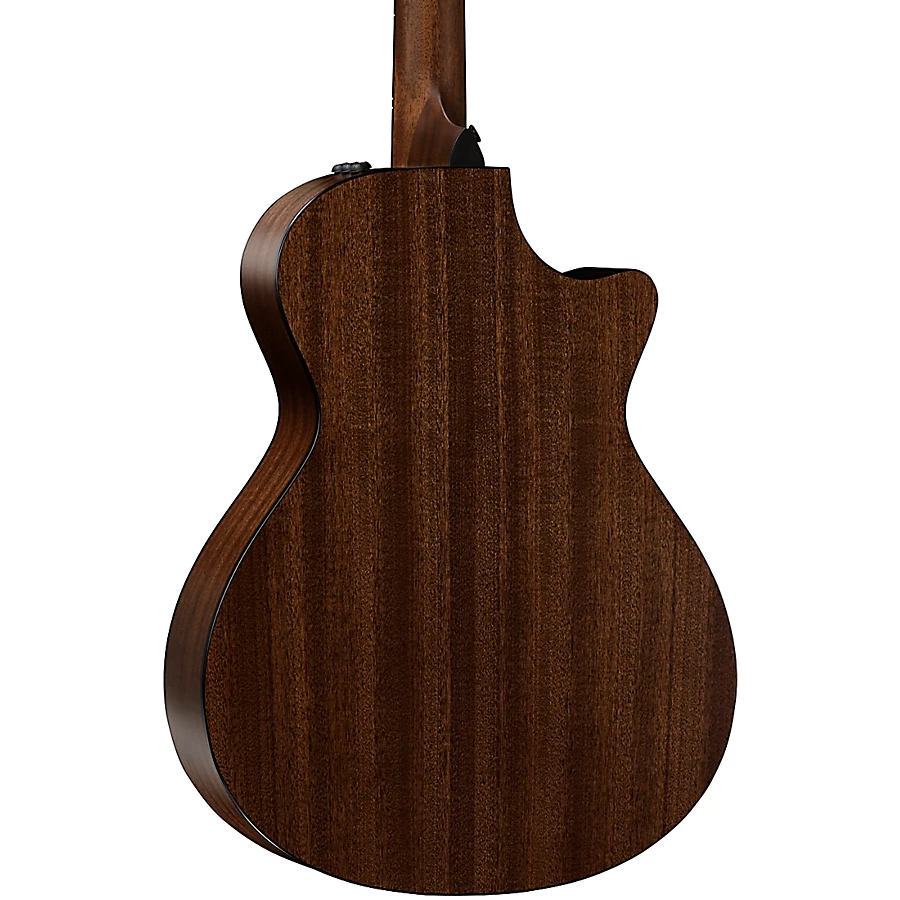 Taylor's Grand Concert is slightly smaller than its Grand Auditorium and yields controlled overtones, so the sound won't occupy a lot of sonic space. This is often a key consideration when other instruments are in the mix, such as in a performance or recording environment, and it allows the guitar to be heard more clearly. The Grand Concert pairs well with both 14-fret and 12-fret neck-to-body construction, and offers an articulate voice with top-end chime. It's perfect for fingerstyle players and light strummers, though flat-pickers are known to enjoy its tonal character too. Its intimate size makes it lap/couch-friendly, and a great fit for players who find smaller instruments more physically comfortable.