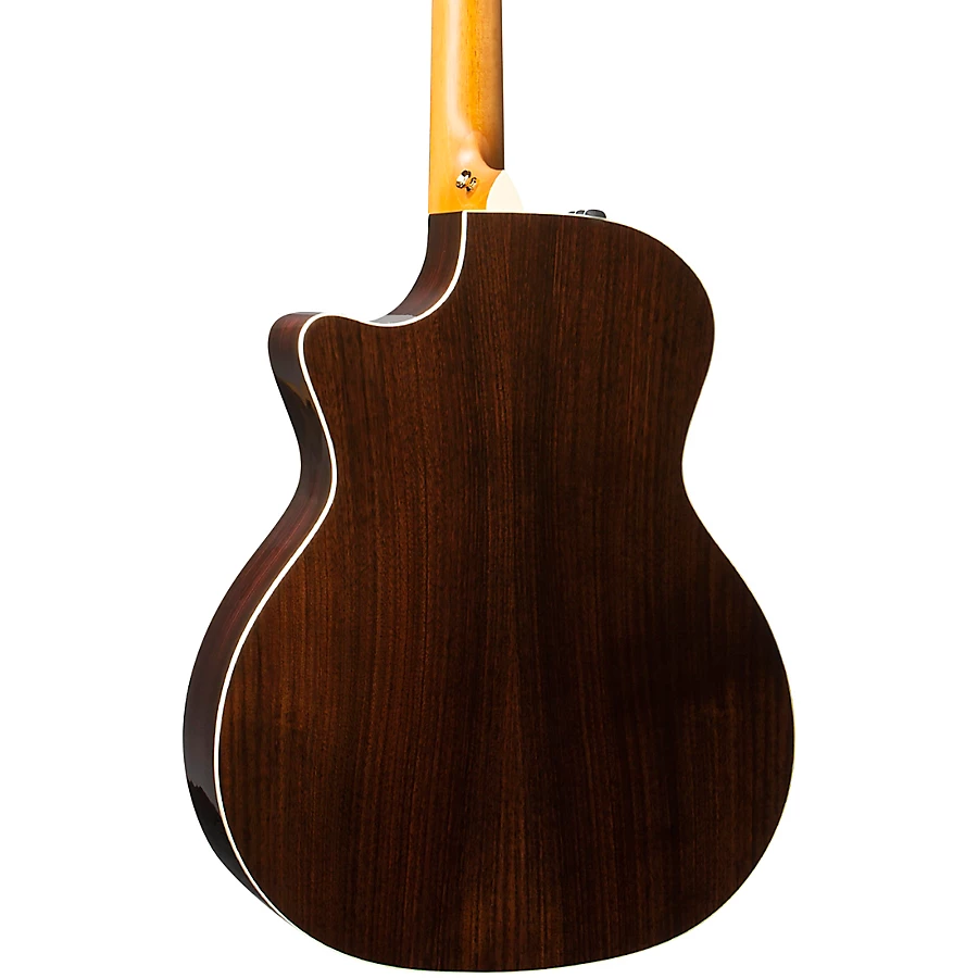 The Taylor Grand Auditorium body with a Venetian cutaway offers versatile utility along with accessible upper-register playing. Slightly wider than a dreadnought yet more compact than a jumbo, the Taylor Grand Auditorium strikes an ideal balance of comfort and projection. Your playing position will feel natural, whether seated or standing, because the ergonomic body contours enable a relaxed grip. From there, the cutaway allows easy fretting all the way up to the 14th fret. The Taylor 414ce plays like a dream, inspiring creativity through its excellent comfort and effortless accessibility.