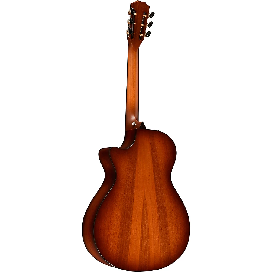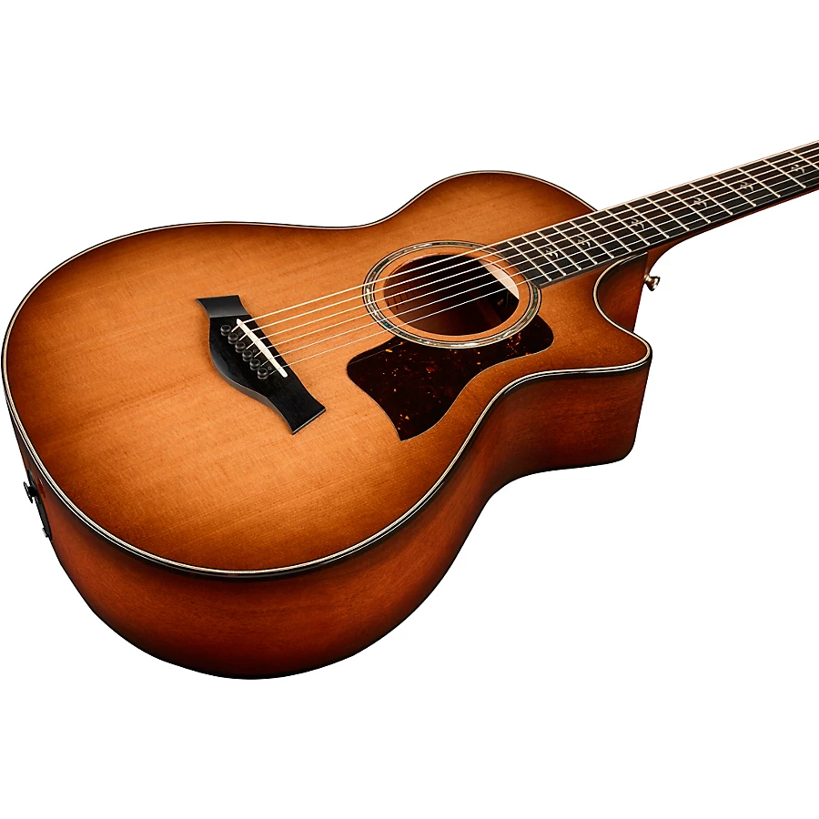 The Taylor 512ce Grand Concert 12-fret acoustic-electric guitar introduces one of Taylor��s newest tonewoods��red ironbark. Master builder Andy Powers was blown away with the acoustic properties of red ironbark. Sourced in Southern California through Taylor��s urban wood initiative, red ironbark has the sonic richness of Indian rosewood, combined with the density and hardness of ebony, to push the sound to another level. Paired with a torrefied Sitka spruce top and Taylor��s V-Class bracing, the sound of this Taylor 500 Series guitar is both muscular and sweet, with piano-like fidelity and strength across the entire frequency spectrum. The tone is as if the notes jump out of the guitar with a natural amplifying effect.